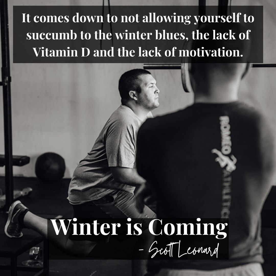With the first snow of the season under our belts and the bay doors at the gym open less and less…we can say winter is coming. For some people this means ski slopes, snowmobiles, pond hockey, and they could not be happier.For others, it means freezing temperatures, mounds of snow, treacherous roadways and reasons to stay inside under the blanket.